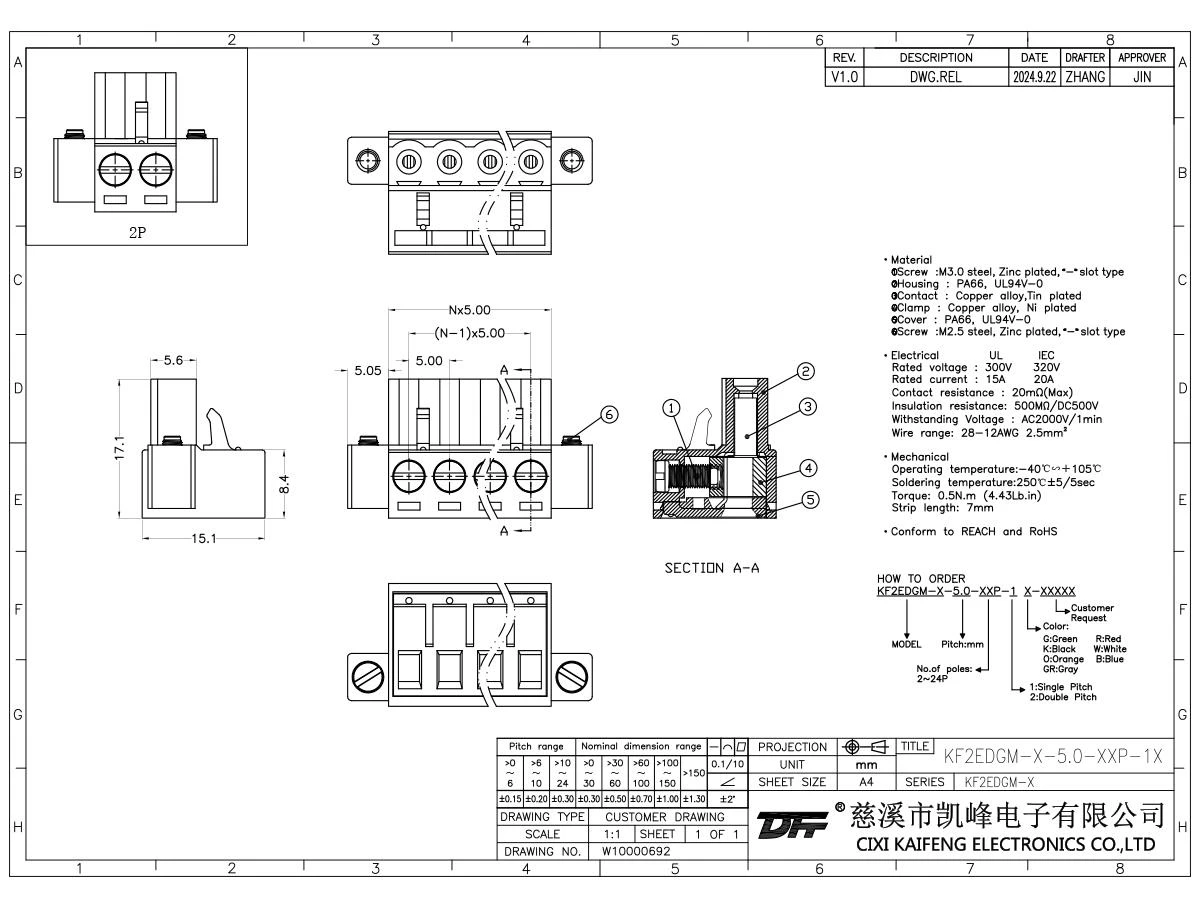Pluggable Terminal Block KF2EDGM-X 5.00mm