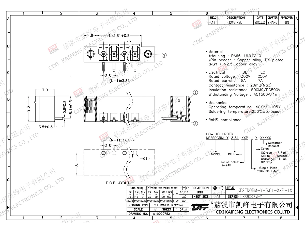 Pluggable Terminal Block KF2EDGRM-Y-3.81mm
