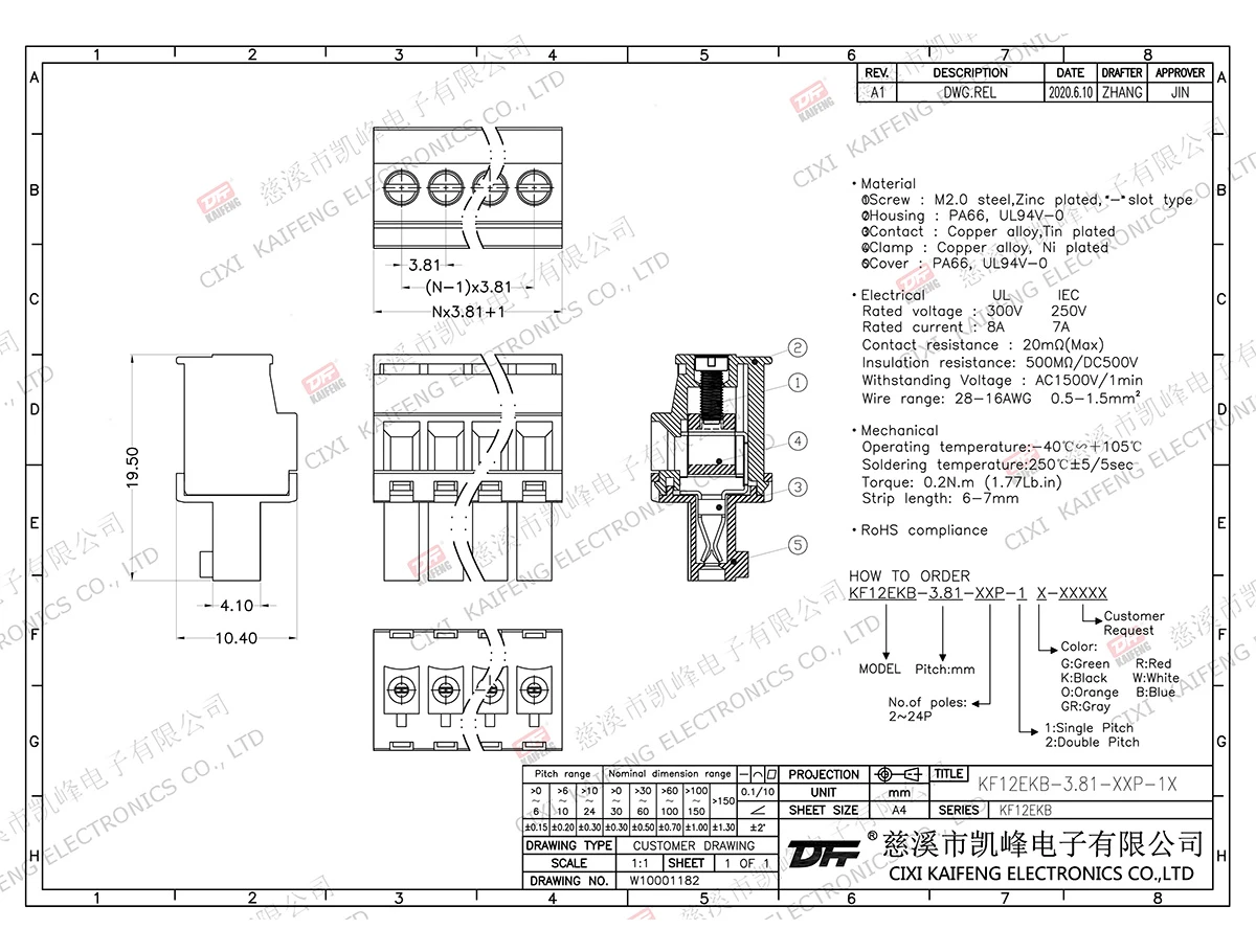 MATERIAL:M2.0,Steel Zinc platedcontact: Phosphor bronzePin header: -Housing: PA66,UL94V-0ElectricalULIECRated voltage300V 250V Rated current8A7AContact resistance20mΩInsulation resistance500MΩ/DC500VWithstanding voltage AC1500V/1minWire range28-16AWG 0.5-1.5mm²MechanicalTemp.rang-40℃~+105℃ Max.soldering+250℃,