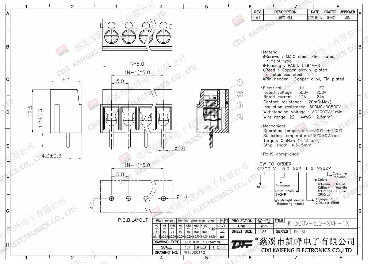 PCB Terminal Block KF300V-5.00mm