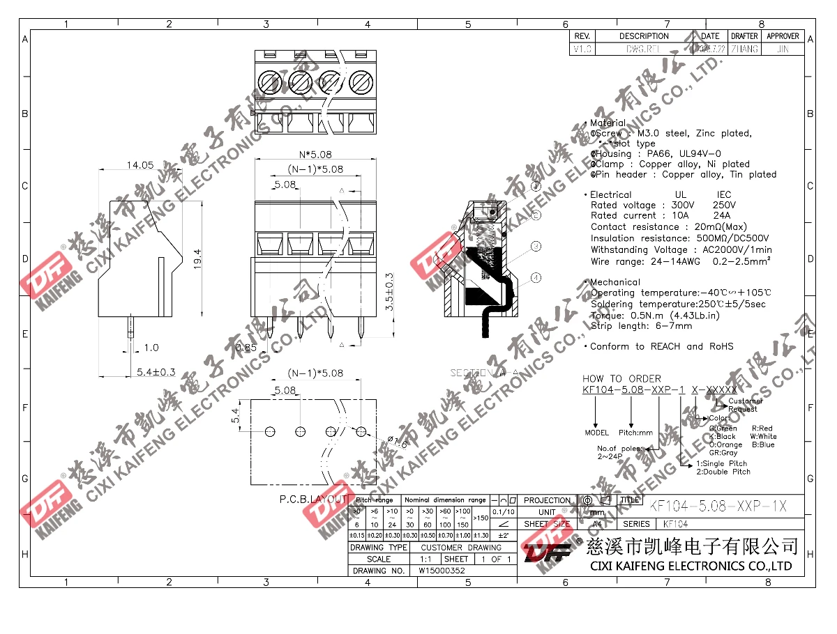 Material:①Screws : M3.0 Steel Zinc plated,"-"slot type ②Housing : PA66, UL94V-0 ③Square box :Brass,Ni plated ④Pin header : Brass, Tin plated &nb