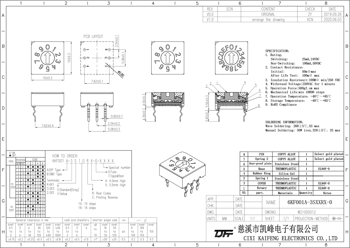 Dip Switch 6KF001A-3S16R4-0