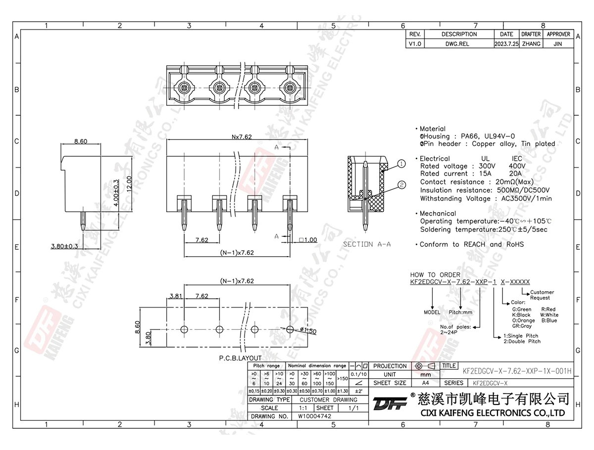 Pluggable Terminal Block KF2EDGCV-X-7.62mm-001H
